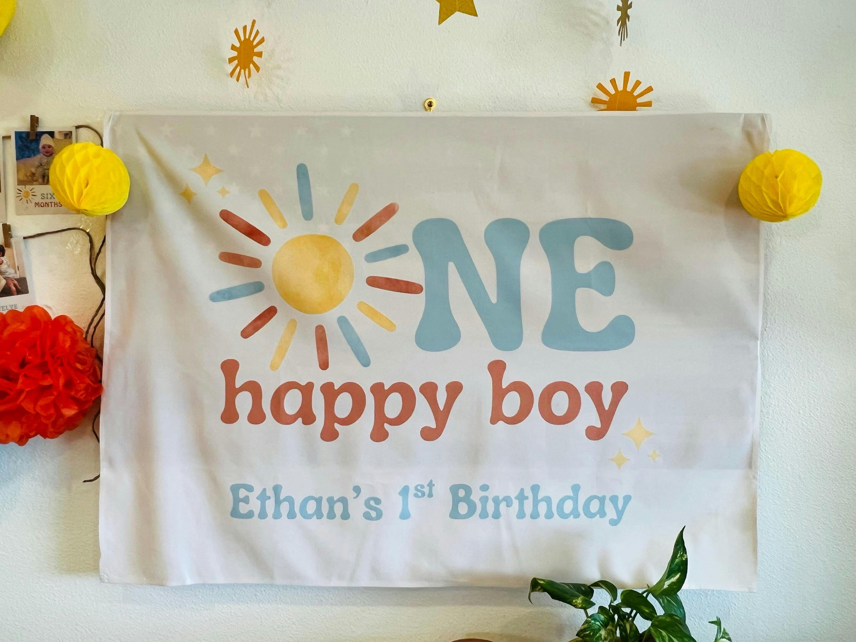 Make your boy's 1st birthday a memorable one with our One Happy Boy 1st Trip Around the Sun Birthday Banner. Order now and let the sunshine in! βοΈπ
