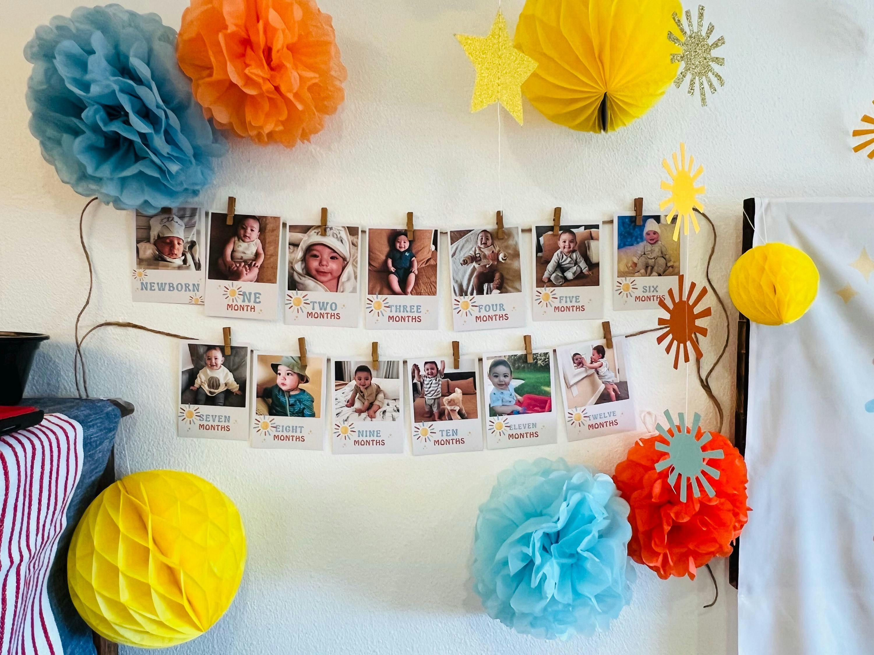 🌞 TWO EASY-TO-USE OPTIONS: 1️⃣ Add Photos in Canva & Print: Upload your baby’s pictures directly into Canva, edit, and print a ready-to-hang banner. 2️⃣ Print & Attach Photos: Print the banner template as blank monthly cards and attach physical 4x6 or 5x7 photos for a hands-on touch! Perfect if you printed your baby’s pictures at Walgreens, CVS, or Shutterfly.